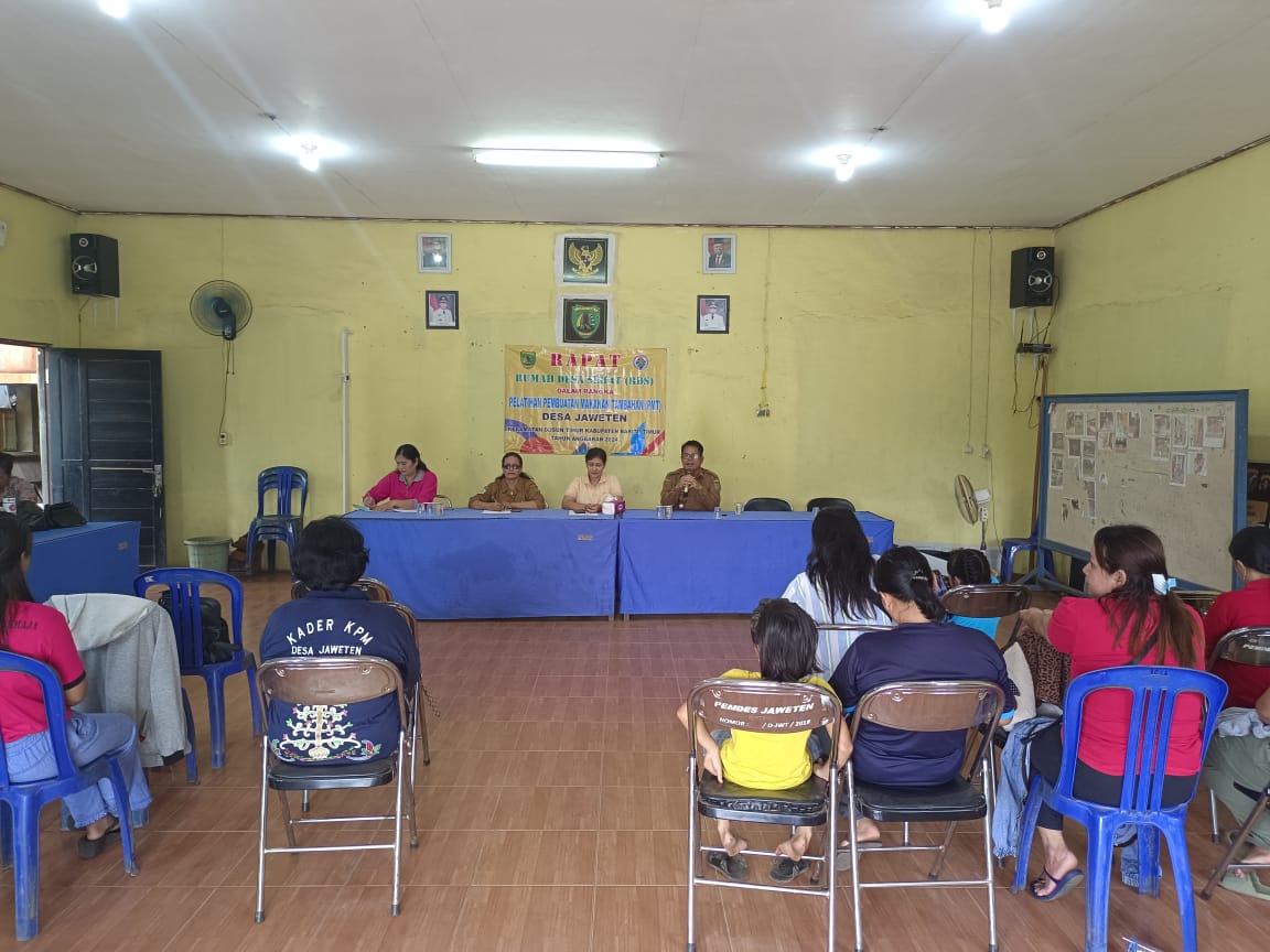 Desa Jaweten, 16 Oktober 2024 – Pemerintah Desa Jaweten mengadakan Rapat Rumah Desa Sehat (RDS) sekaligus Pelatihan Pembuatan Makanan Tambahan (PMT) pada Selasa, 16 Oktober 2024. Kegiatan ini berlangsung di Gedung Balai Desa Jaweten dan melibatkan berbagai elemen masyarakat serta organisasi desa.