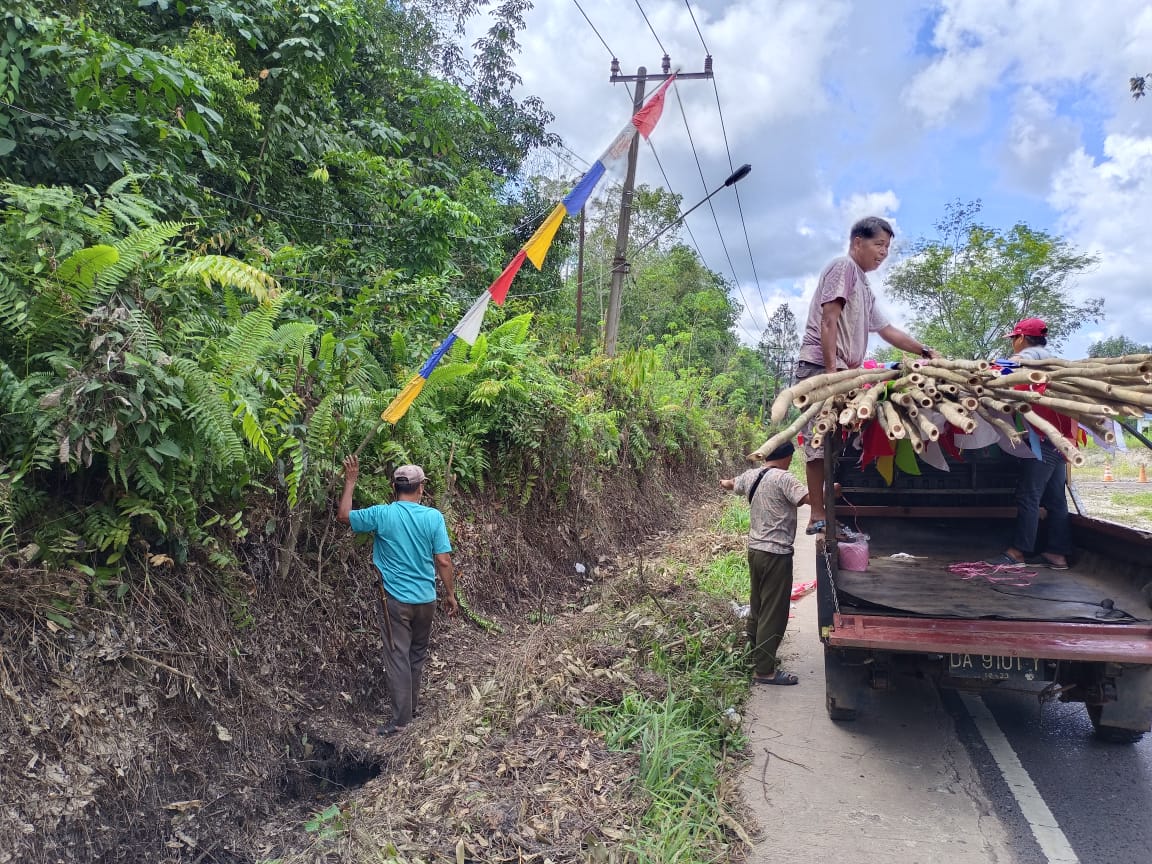 Warga Barito Timur Gelar Gotong Royong Pasang Umbul-Umbul Sambut Kunjungan Presiden